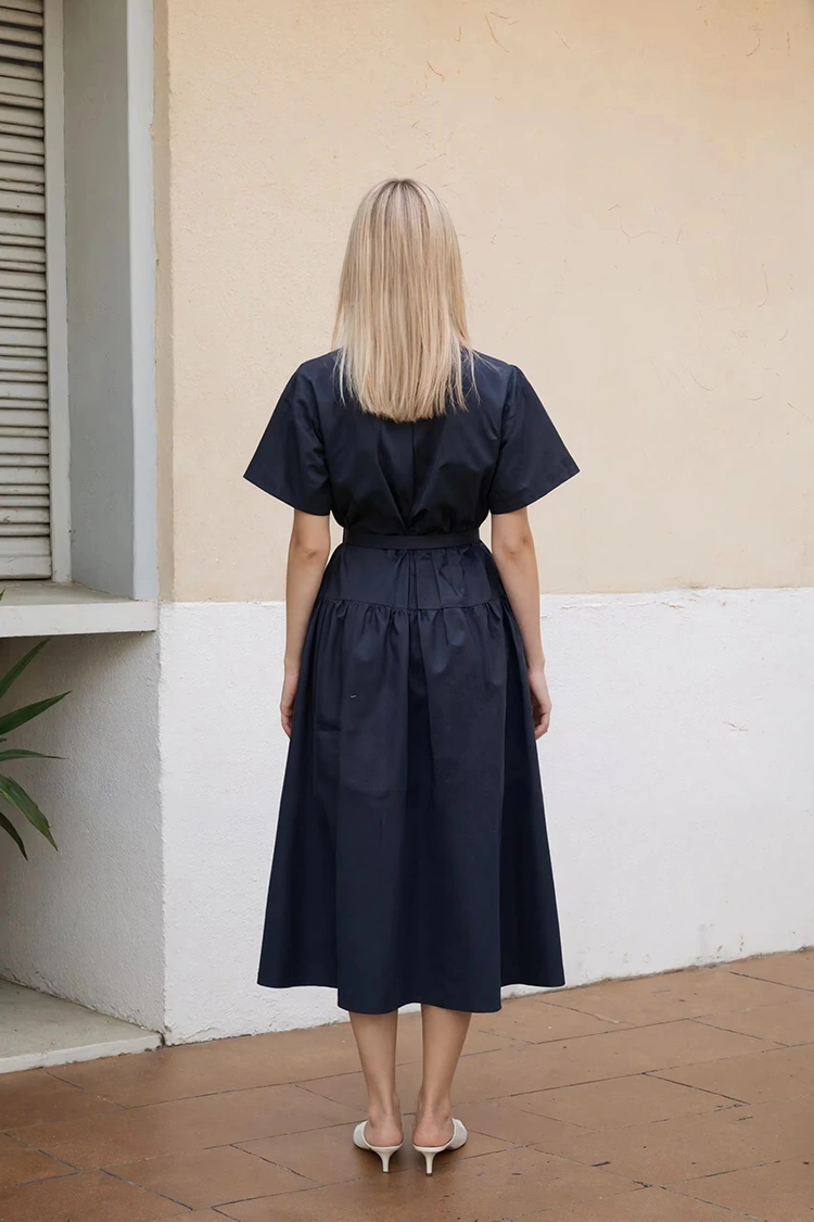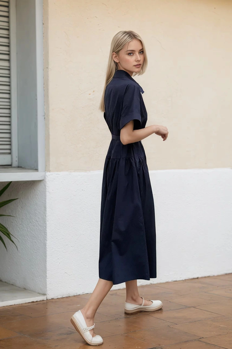 RUIFAN é um fabricante e fornecedor profissional de vestido de escritório com camisa preta feminina na China. Temos mais de 25 anos de experiência na indústria do vestuário. Este vestido mantém o design clássico de gola e fenda de uma camisa, incorporando elegância profissional e um estilo casual diário.