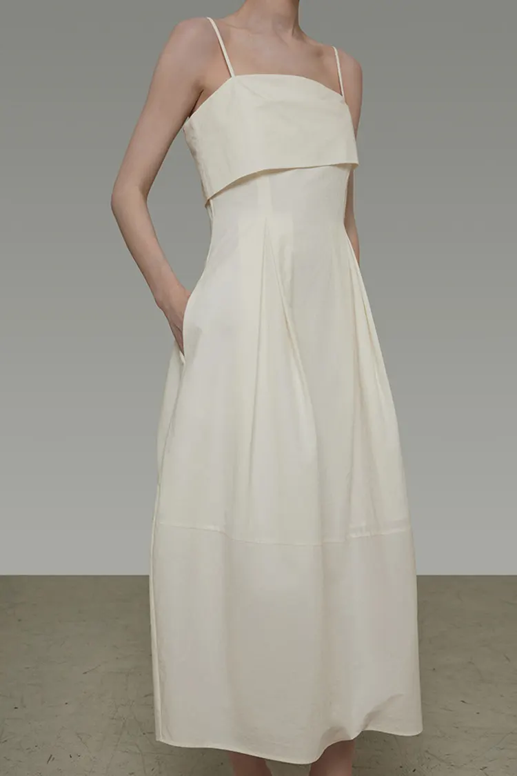 Vestido feminino assimétrico com gola dobrável estilo francês, vestido longo sem mangas com design exclusivo de verão