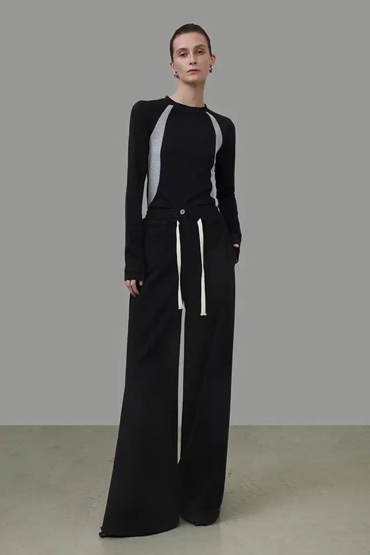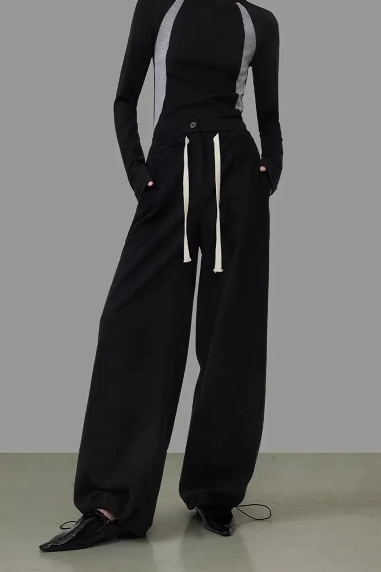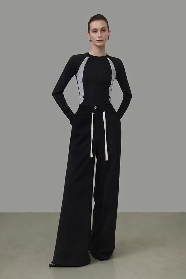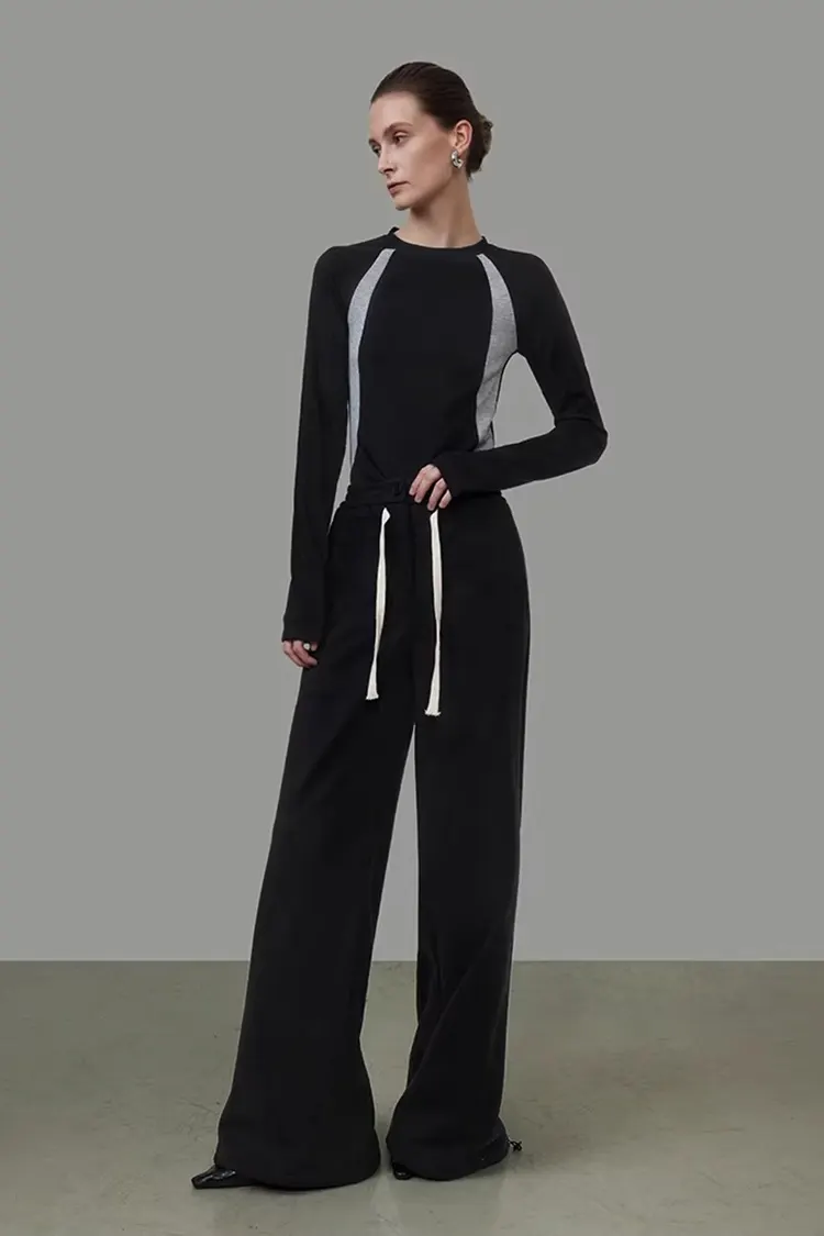Adotamos o estilo de calças largas em forma de micro A e corte tridimensional 3D. Após vários ajustes de detalhes, o formato se adapta melhor ao tipo de corpo asiático. O design superior de cintura alta e cintura larga aumenta efetivamente a cintura, combinado com o cordão caído natural, é simples e elegante sem ser volumoso. O formato da calça tem forte efeito na cintura, abdômen, quadris e pernas, pode acomodar vários tipos de corpo, podendo apresentar facilmente uma proporção esbelta e temperamento elegante.