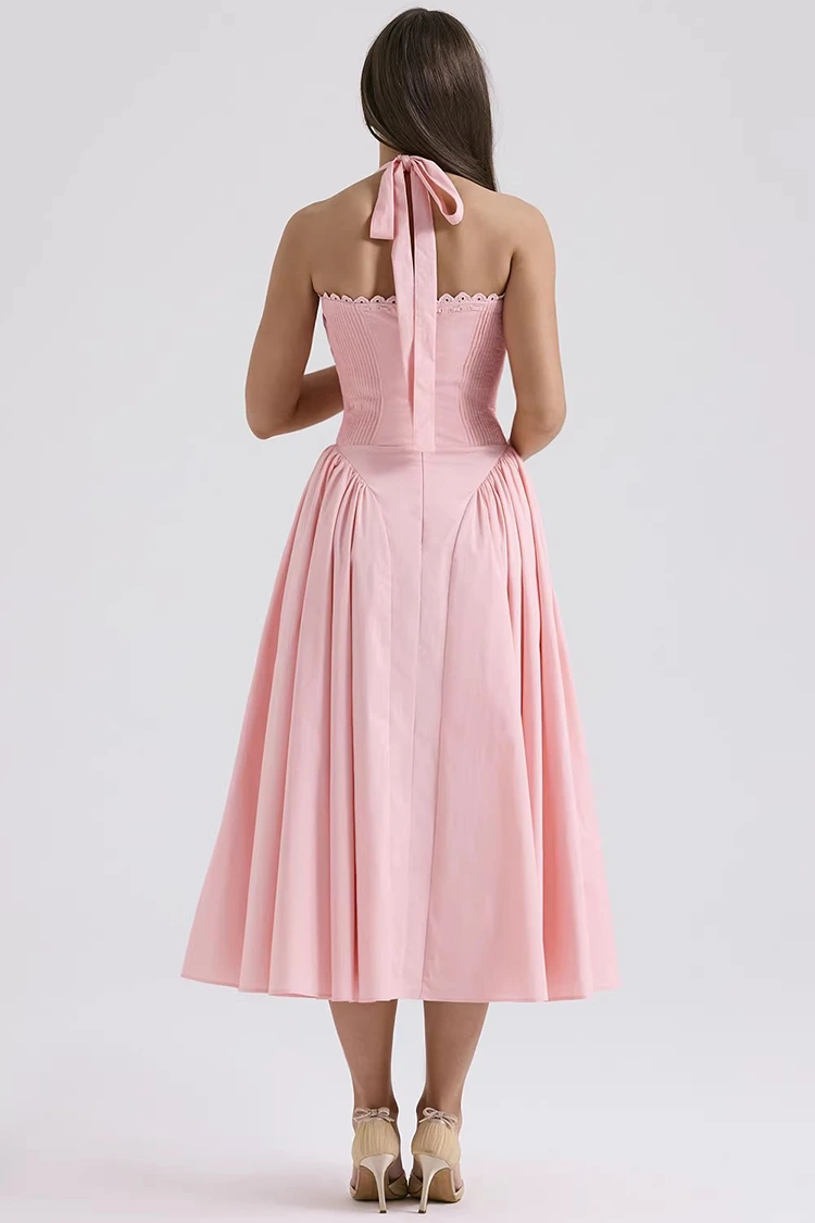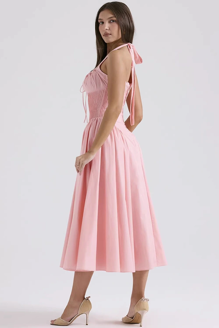 Vestido midi feminino de algodão rosa