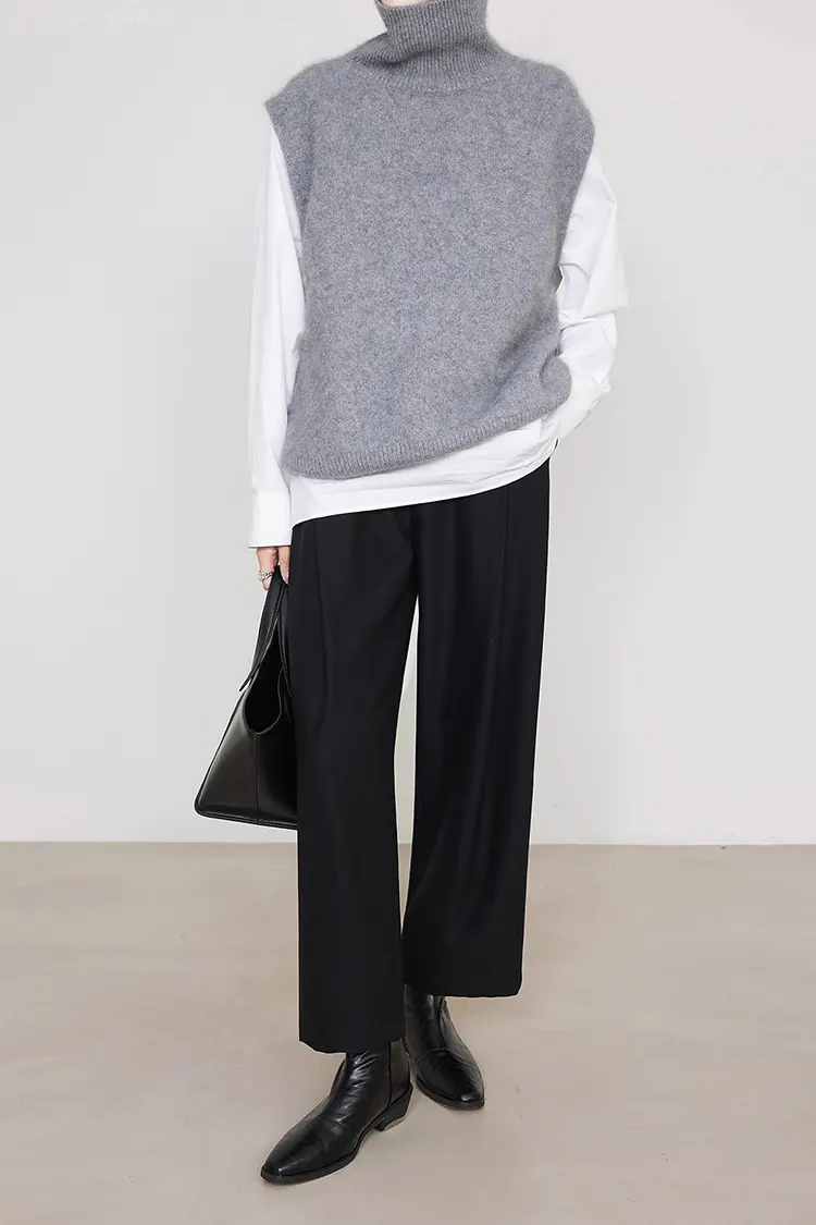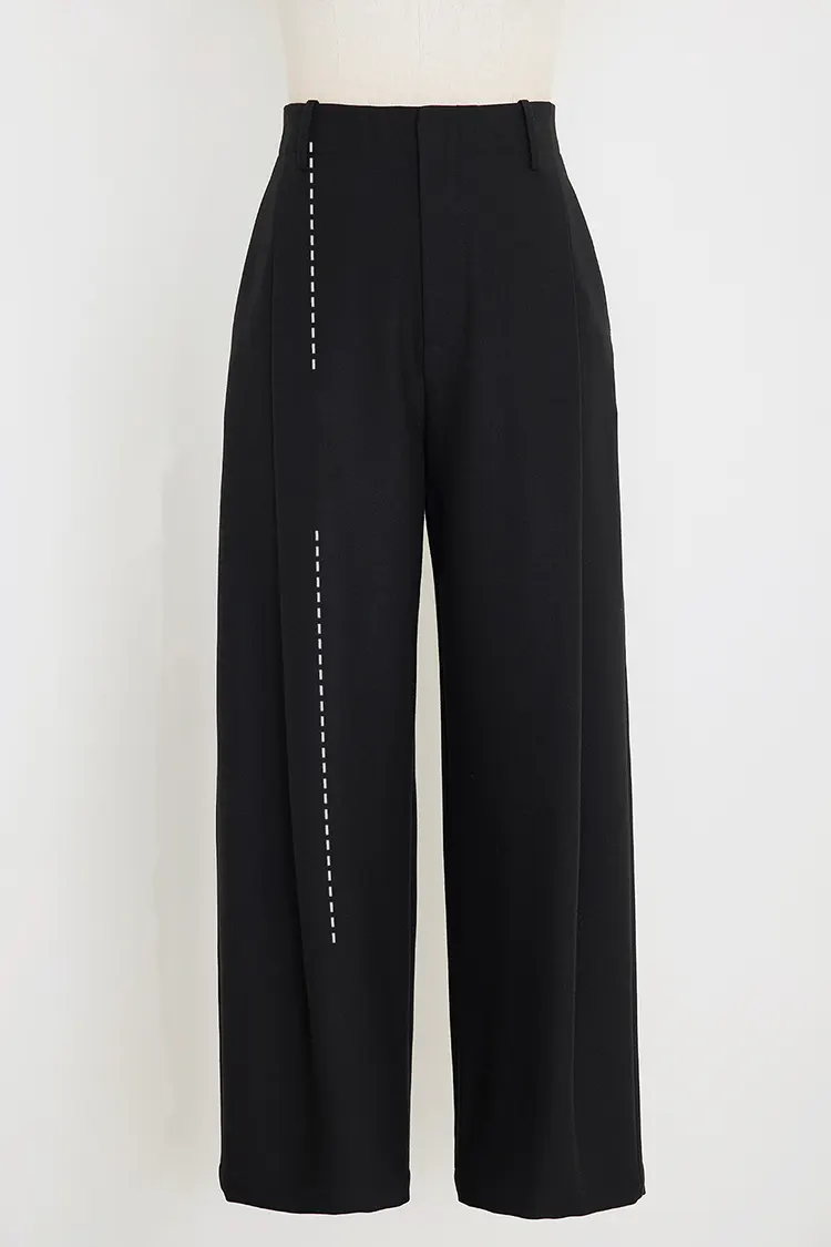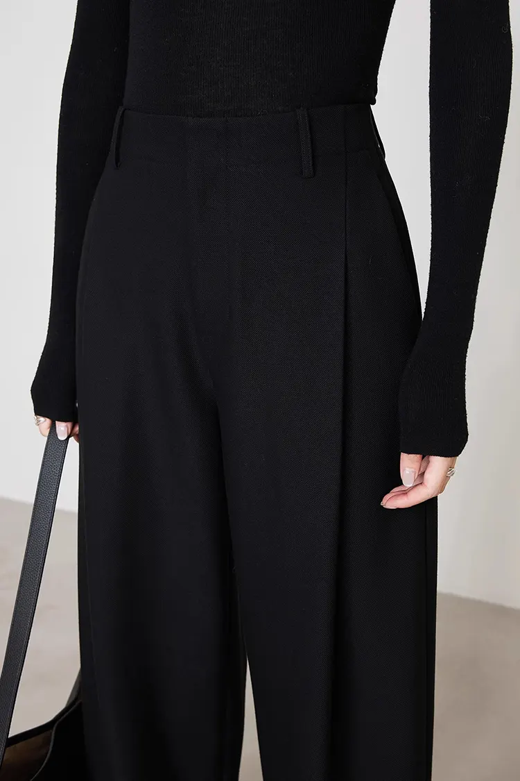 As calças femininas plissadas são desenhadas em cor sólida e comprimento longo, adequadas para as quatro estações. Não há necessidade de ajustar frequentemente as categorias de compra de acordo com as estações do ano, o que melhora significativamente a eficiência das compras. O produto suporta personalização total de cor, tamanho e logotipo. Pode ser ajustado de forma flexível de acordo com as preferências dos diferentes mercados ao redor do mundo e o estilo de marca dos compradores. Seja no fornecimento regular para lojas ou na criação de séries exclusivas para marcas próprias, ele atende com precisão às necessidades.